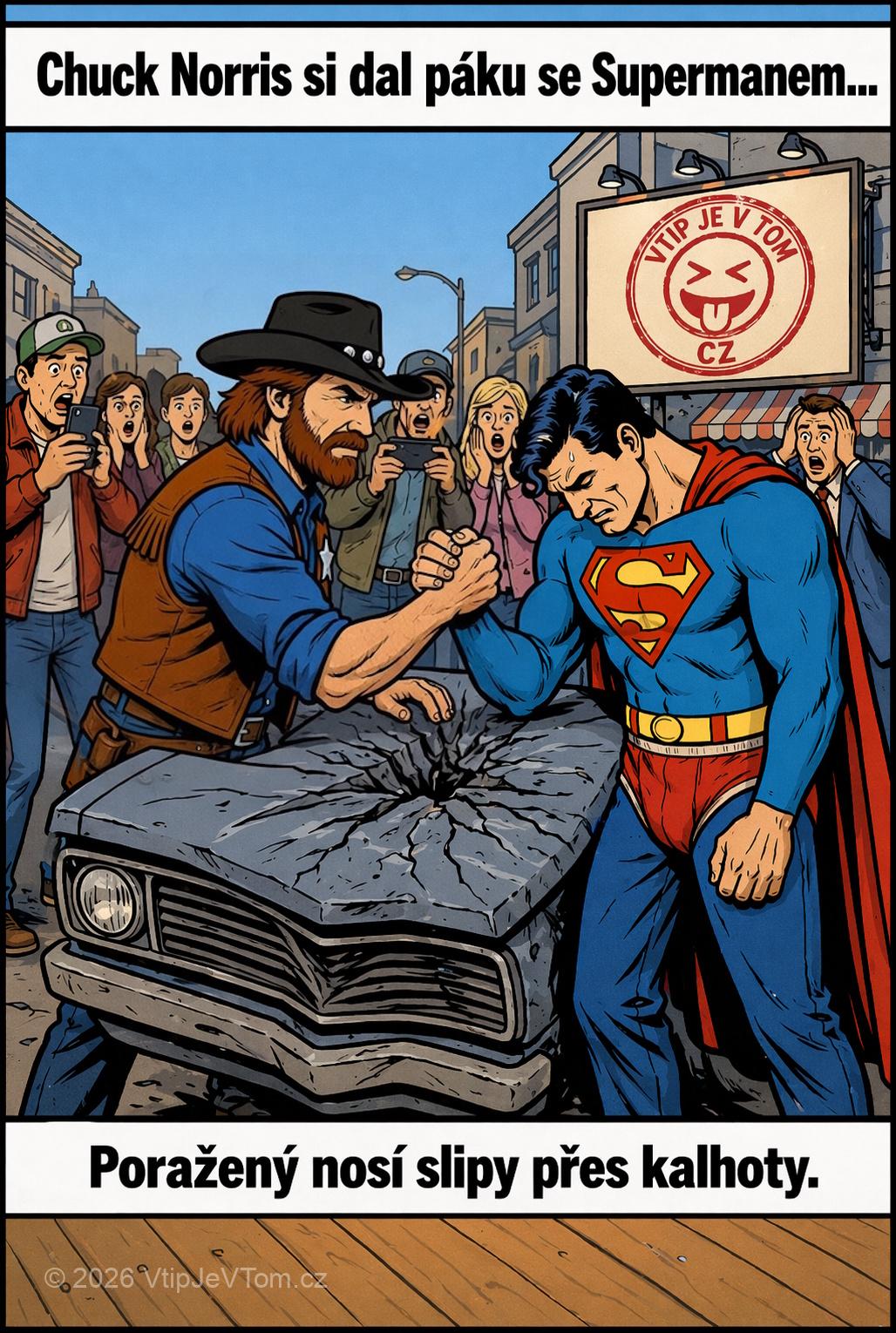 Chuck Norris si prý jednou dal páku se Supermanem. Vítěze vám neřeknu, ale vsadili se o to, že kdo prohraje, bude muset celý život nosit slipy přes kalhoty.