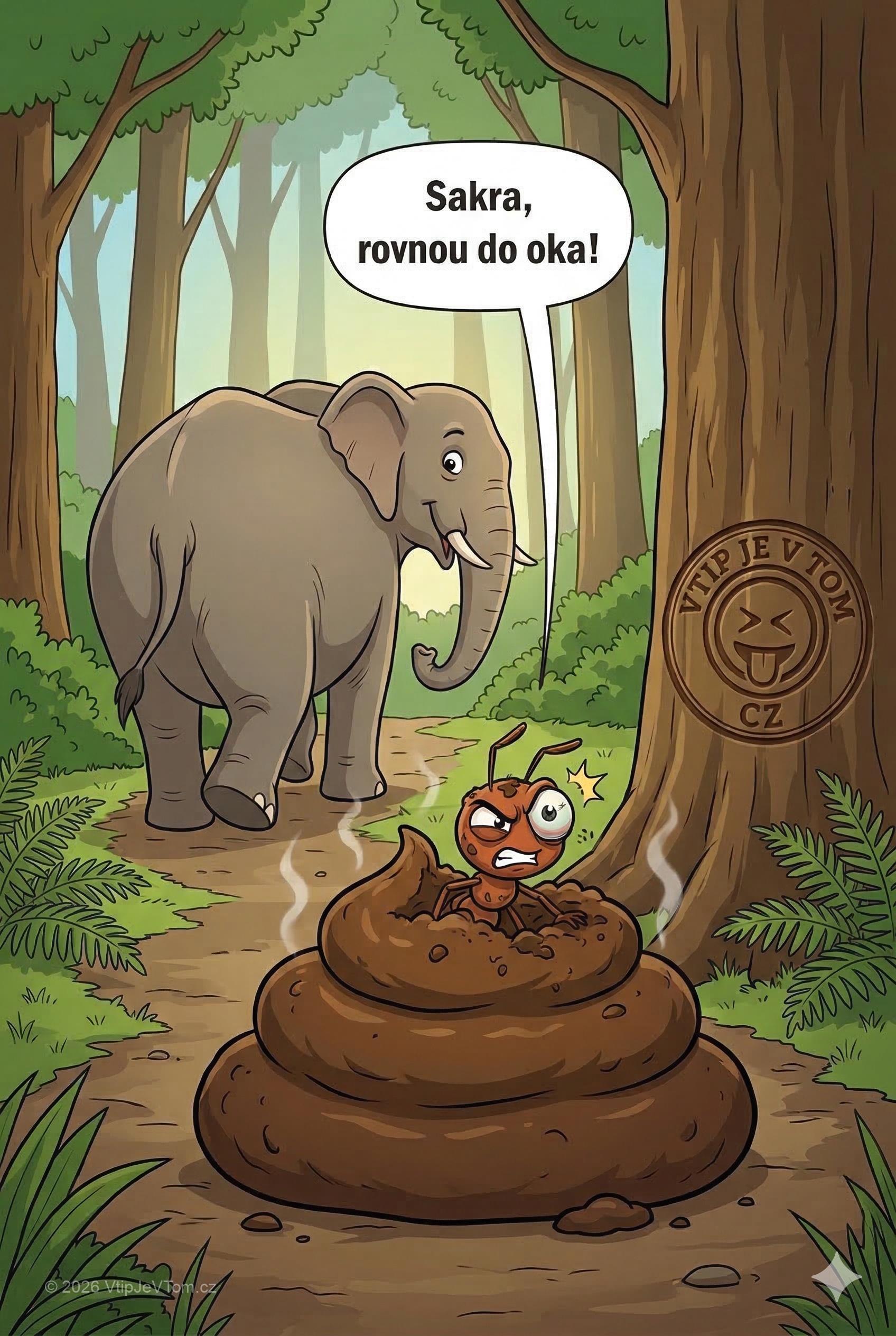 Mravenec se po hodině vyhrabe z toho nadělení a kleje: „Sakra, rovnou do oka!”