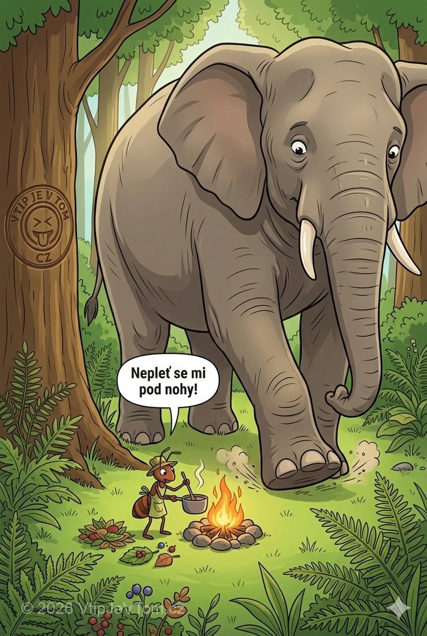 Mravenec se naštve a zakřičí: „Nepleť se mi pod nohy!“