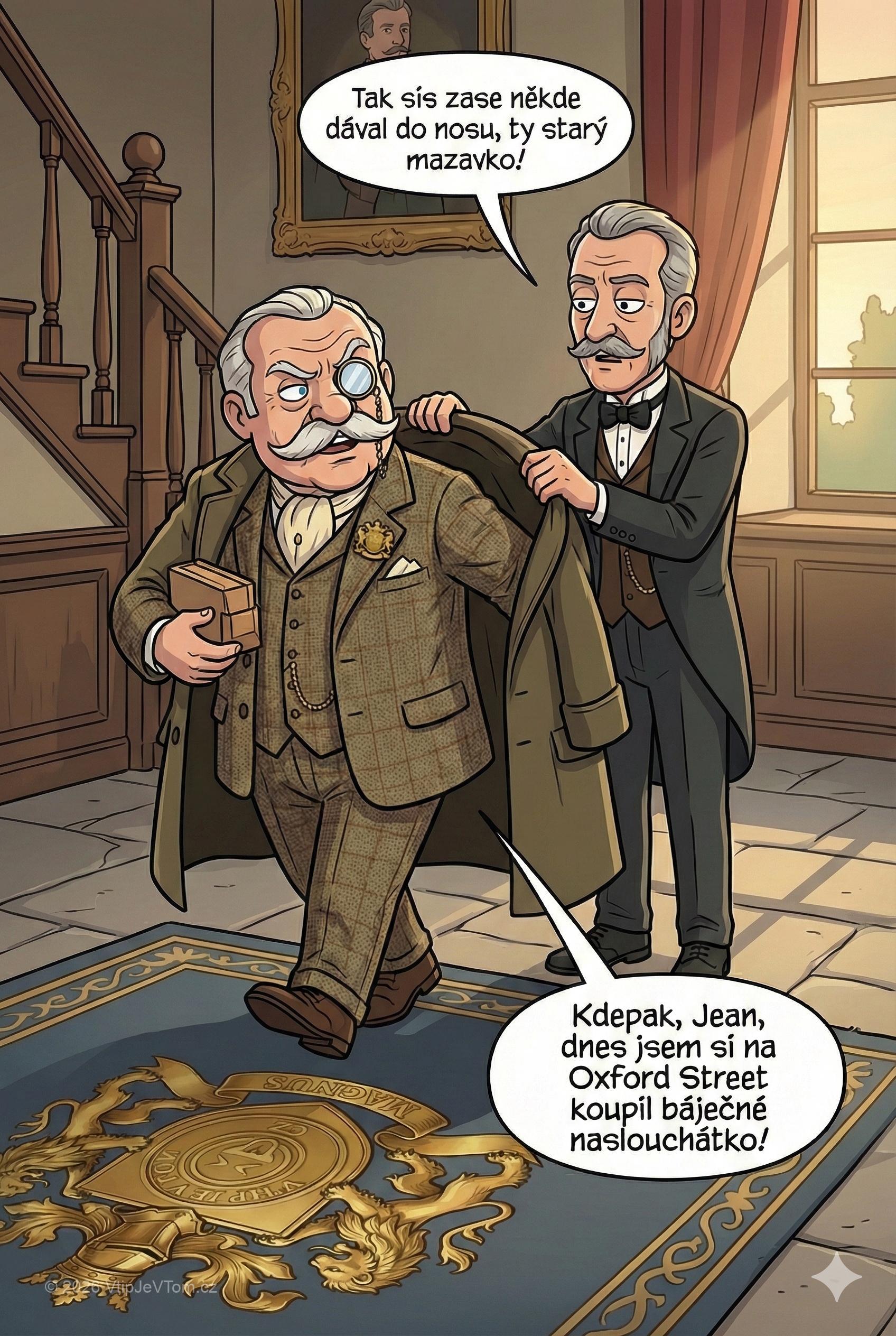 Lord Magnus: „Kdepak, Jean, dnes jsem si na Oxford Street koupil báječné naslouchátko!“