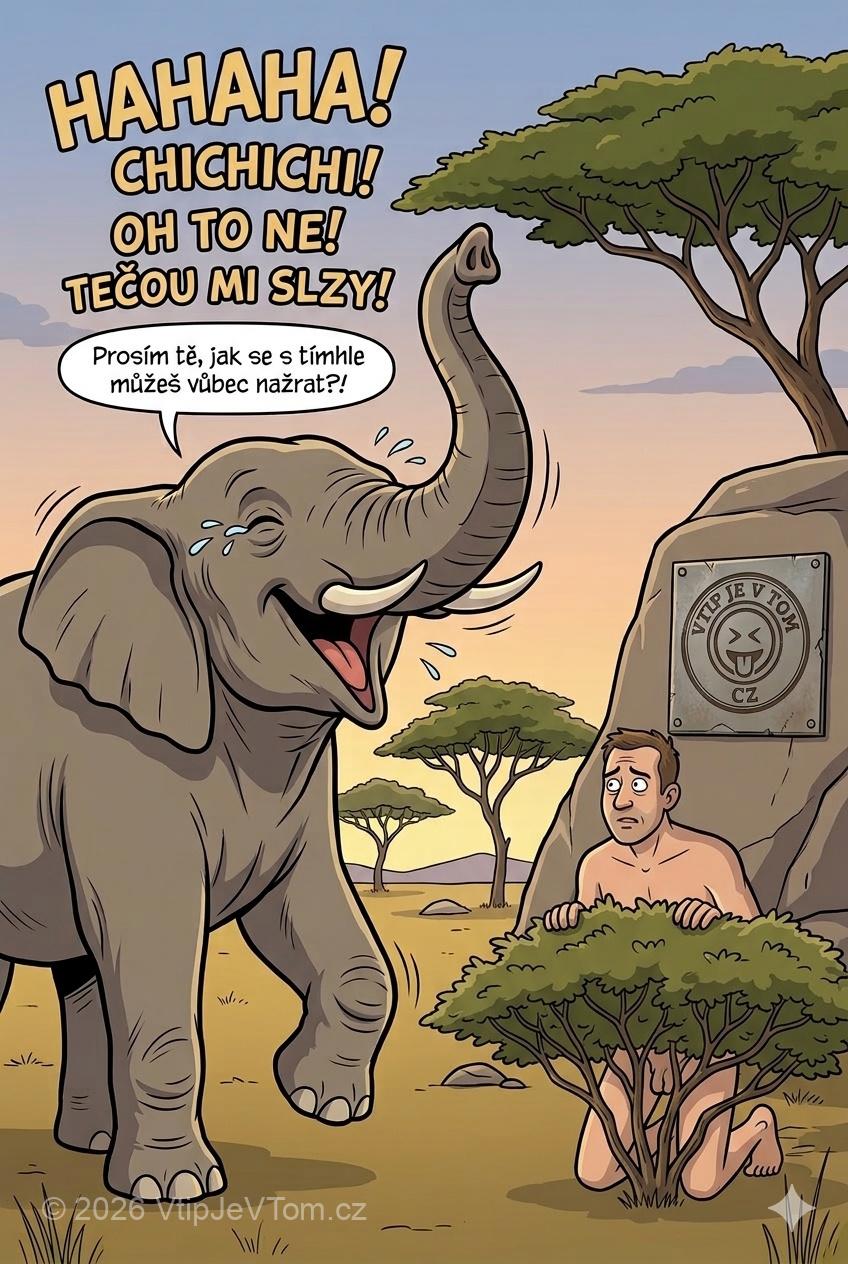 Směje se, až mu tečou slzy, vůbec není k utišení, a když se dost nasměje, zeptá se naháče: „Prosím tě, jak se s tímhle můžeš vůbec nažrat?!”