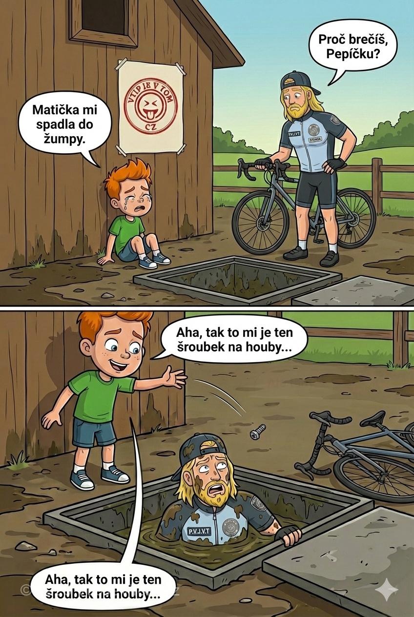 Pepíček: „Aha, tak to mi je ten šroubek na houby…“